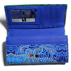 • Feature's 14 card slots, 6 pockets, and a zippered change pocket