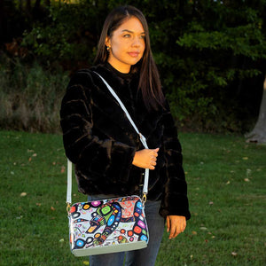 A beautiful, colourful purse by Chipewyan artist John Rombough.