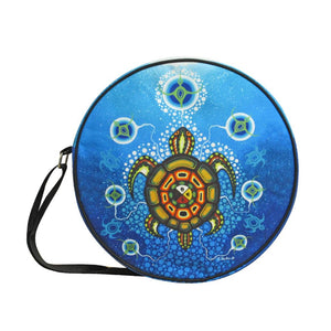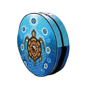 The Turtle is sacred in the indigenous culture. It carries the four colours of the medicine wheel, symbolizing important elements and can be different depending on the tribe. The seven circles represent the seven teachings of our people, and inside each circle is a bird that delivers the message of the creator.