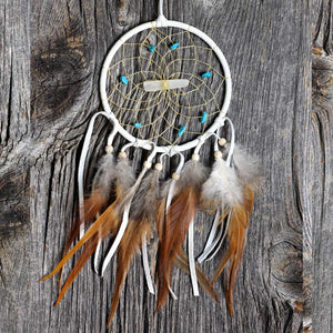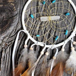 Beautiful and finished with a quartz crystal and various semi-precious stones in the web.