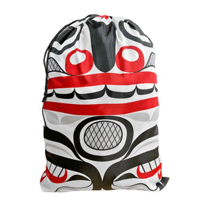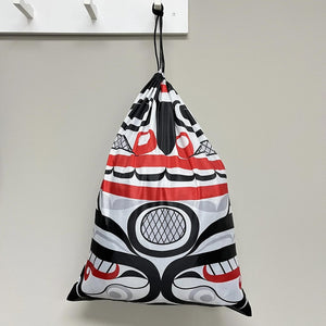 "This is a Maxinuxw-Killer Whale. I’ve utilized the cross-hatching elements, my grandfather, Sam Henderson used and incorporated within my design. Killer whales represent strength and power."