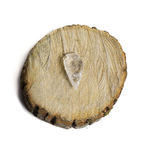 An arrowhead carved from raw crystal. Makes a great necklace or decorative item!