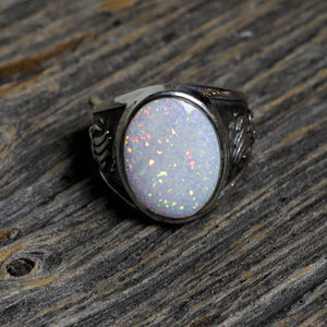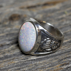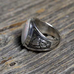 Navajo Silver Bear Paw Ring w/ Manmade Opal by Ella Cowboy