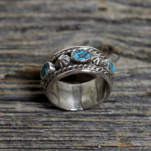 • Beautiful Navajo made sterling silver ring with free form turquoise stones
