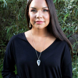 A beautiful crystal arrowhead necklace with a silver chain. Hangs at 24" - Just the right length.