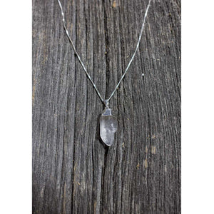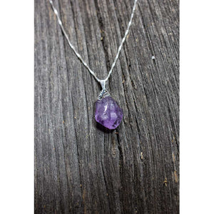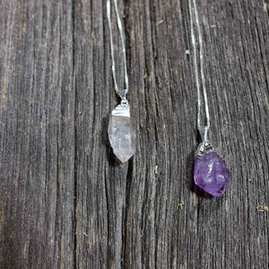 A beautiful amethyst or crystal quartz pendant on a sterling silver chain.