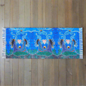 'Breath of Life' fringed shawl by Metis artist Leah Dorion. This shawl is cozy, soft and has a nice thickness to it.