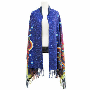 'Tree of Life' fringed shawl Odawa-Pottawatomi Artist James Jacko. This shawl is cozy, soft and has a nice thickness to it.